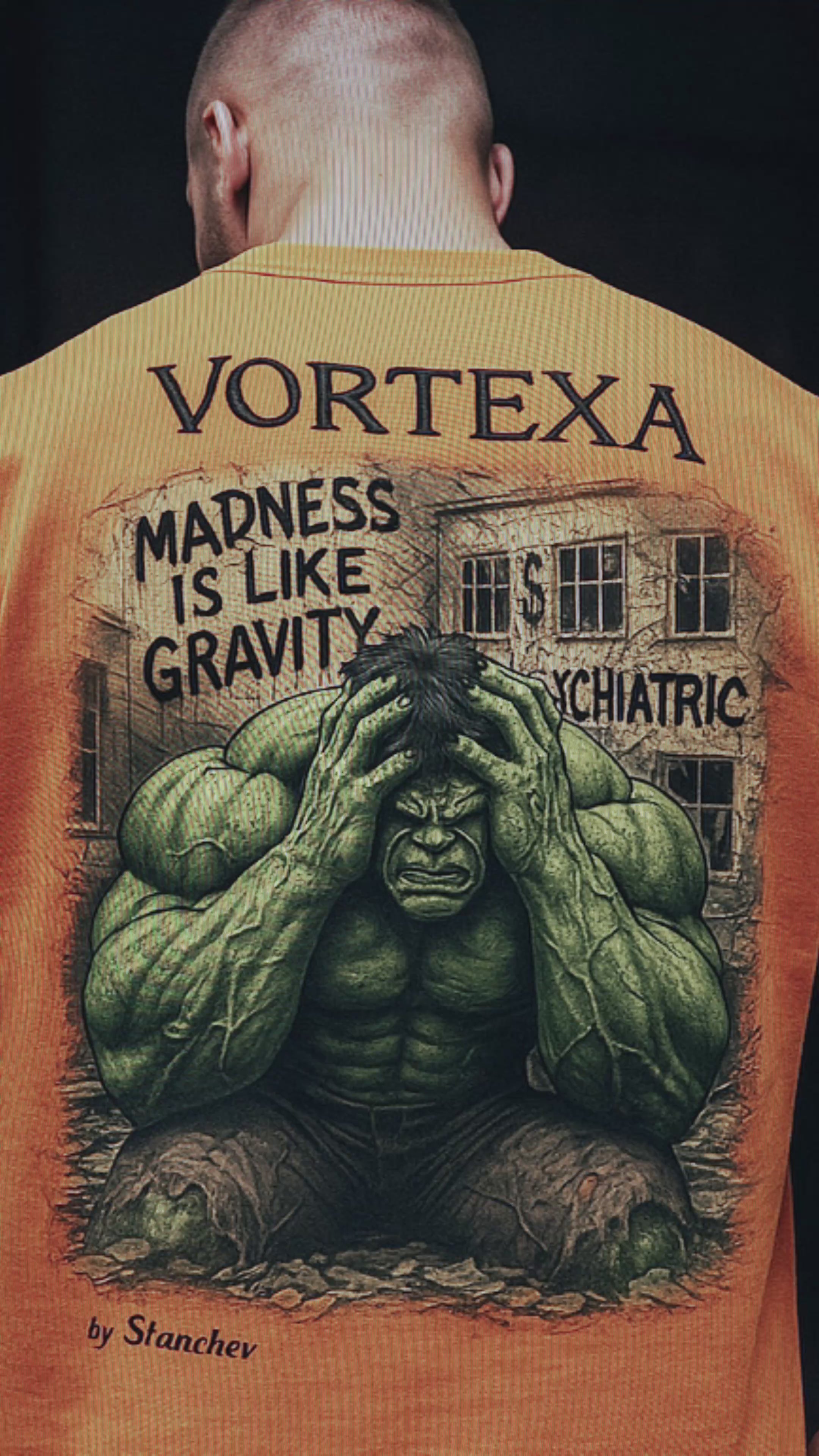 Стилна тийл тениска с артистичен horror дизайн 'Psychotic Mad Artist' от колекцията VORTEXA. За т...